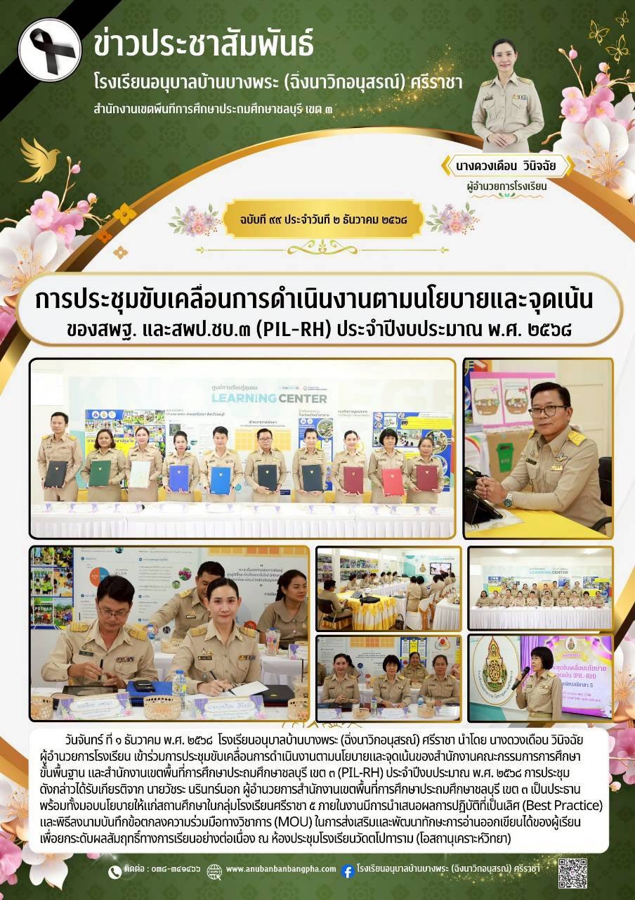 เข้าร่วม การประชุมขับเคลื่อนการดำเนินงานตามนโยบายและจุดเน้นของ สพฐ. และ สพป.ชบ.3