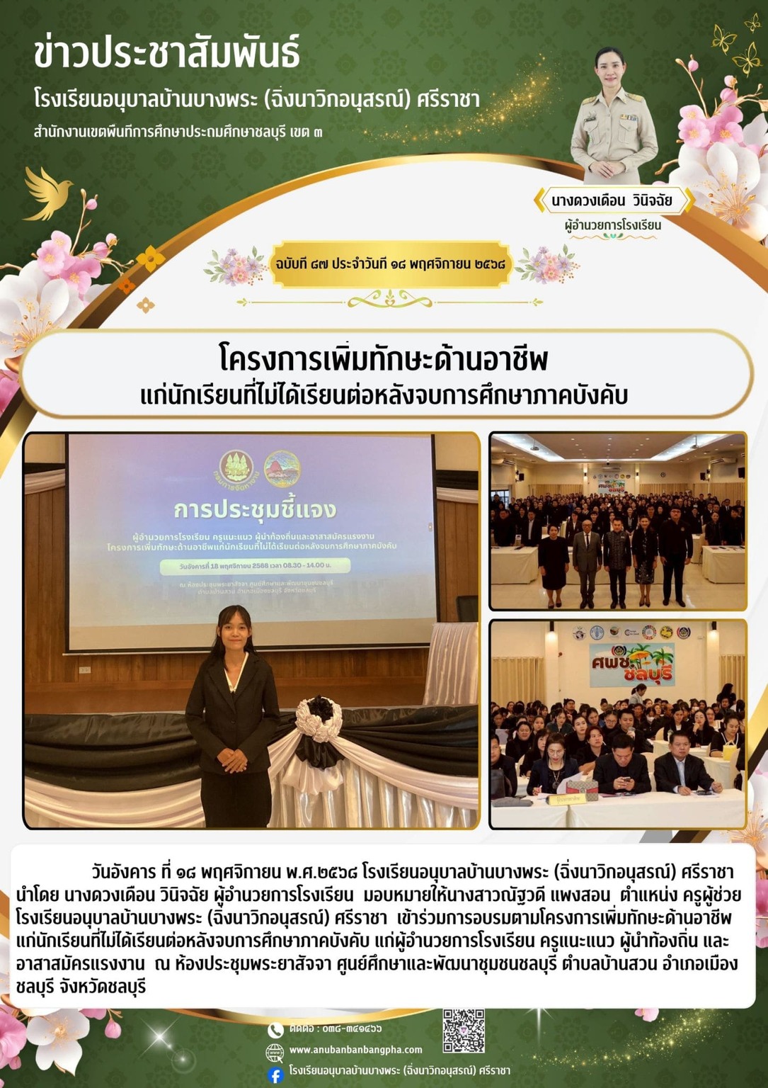 เข้าร่วม โครงการเพิ่มทักษะด้านอาชีพแก่นักเรียนที่ไม่ได้เรียนต่อหลังจบการศึกษาภาคบังคับ
