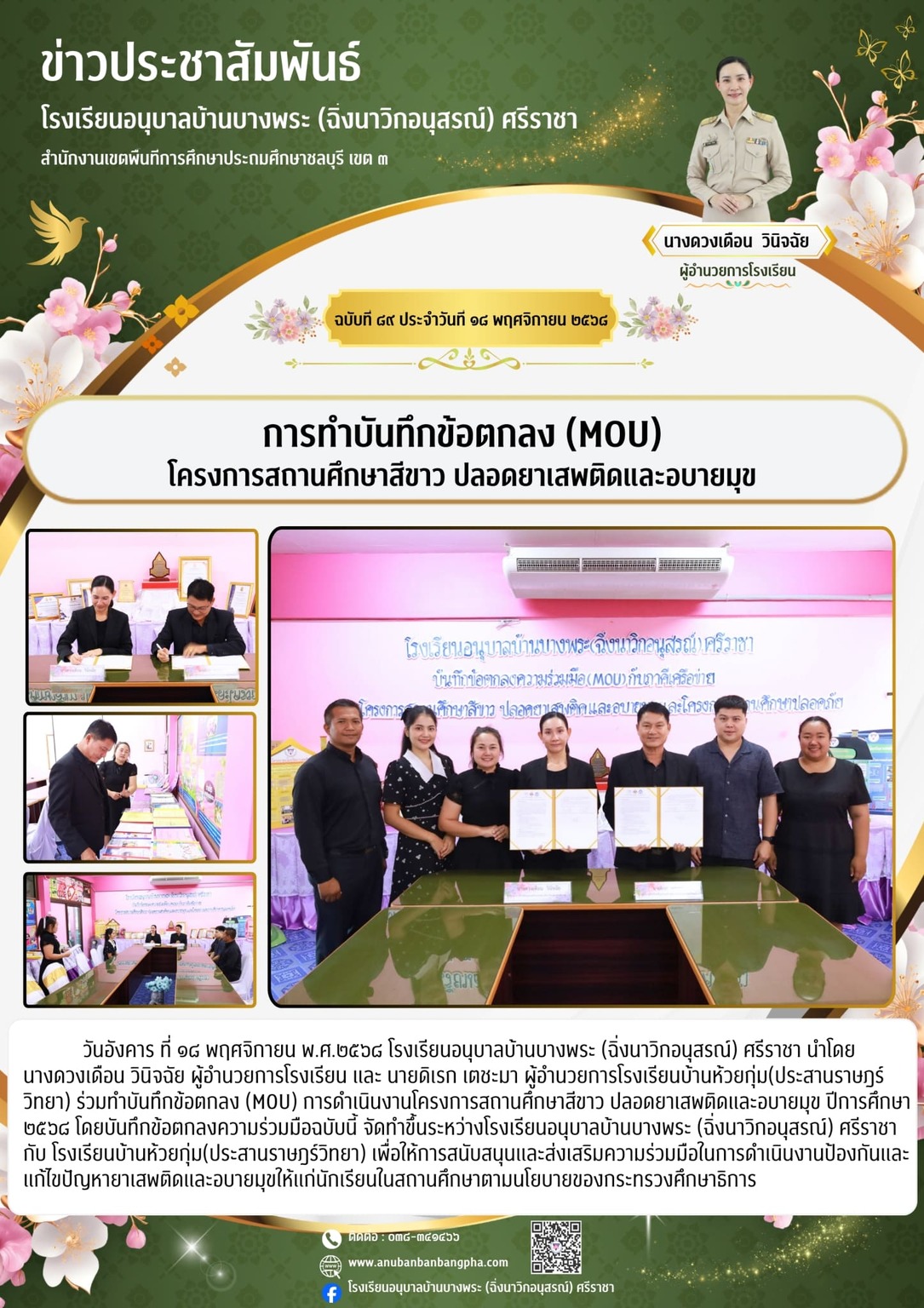 บันทึกทำข้อตกลง (MOU) โครงการสถานศึกษาสีขาว ปลอดยาเสพติดและอบายมุข