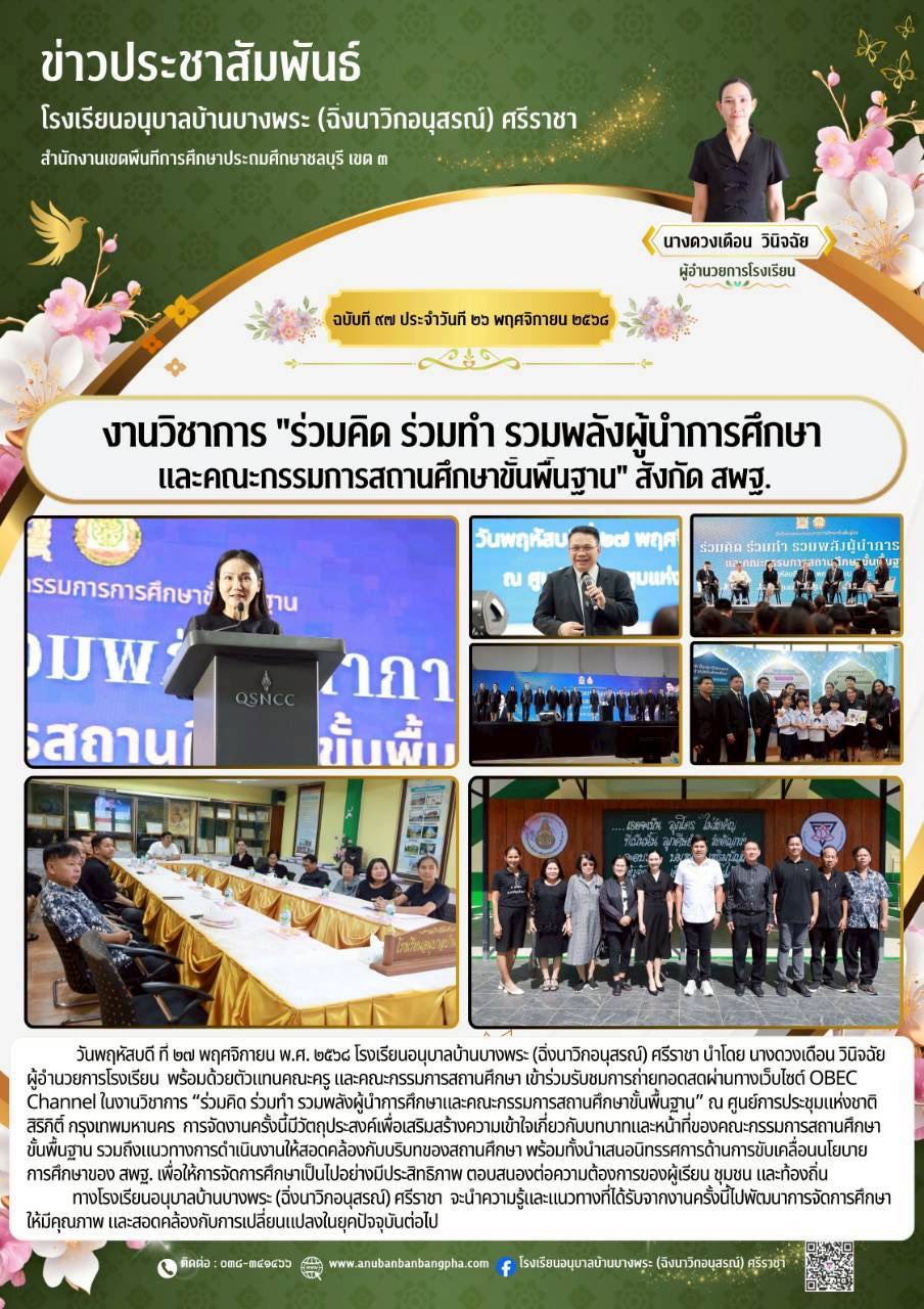 เข้าร่วม รับชมถ่ายทอดงานวิชาการ "ร่วมคิด ร่วมทำ รวมพลังผู้นำการศึกษา และกรรมการสถานศึกษาขั้นพื้นฐาน" สังกัด สพฐ.