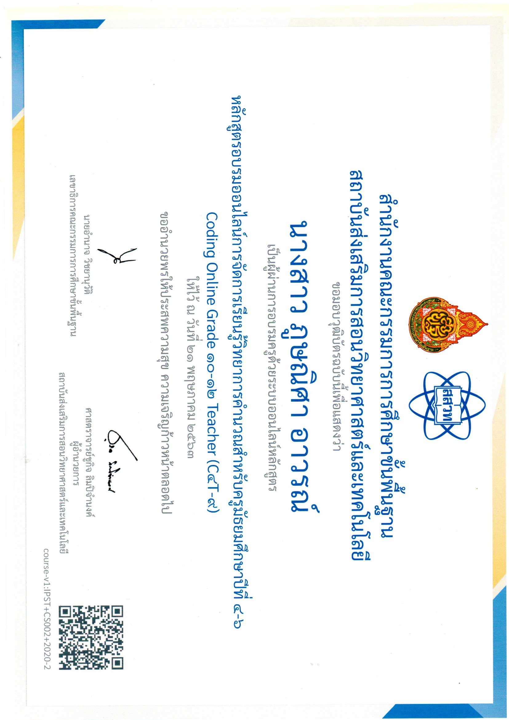ชื่อผลงาน : ปี 2563 ผ่านการอบรมครูด้วยระบบออนไลน์หลักสูตร อบรมออนไลน์การจัดการเรียนรู้วิทยาการคำนวณสำหรับครูมัธยมศึกษาปีที่ 4-6 ของ (สพฐและ สสวท)